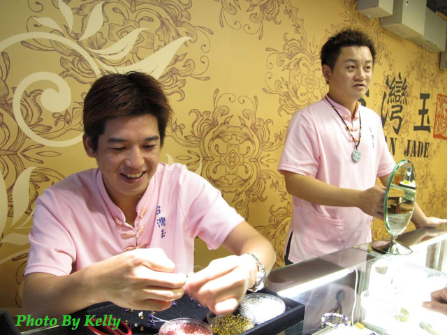 在台灣玉店裡有兩位帥氣的美男子,使出ㄋㄞ功,三寸不爛之舌....((( 喂!不是啦~